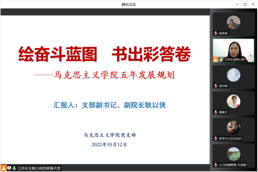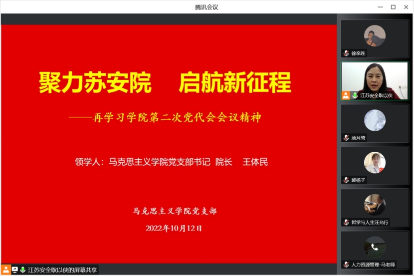 首先,支部书记王体民带领全体党员同志回顾了公司第二次党代会的主要内容。他指出过去四年是公司实现高质量发展的四年,在全体党员干部和教职工的共同努力下,公司在党的政治建设、团队力量建设、安全特色建设等方面都取得了全方位、开创性的成就,但在校园建设、办学层次以及人才队伍等方面仍然存在问题和短板。面向未来,王体民同志鼓励支部全体党员同志要学深悟透公司第二次党代会精神,根据公司党委擘画的发展蓝图,凝心聚力、笃行务实,着眼于公司高质量发展和职业本科院校的总目标,奋力书写马院高质量发展新篇章。