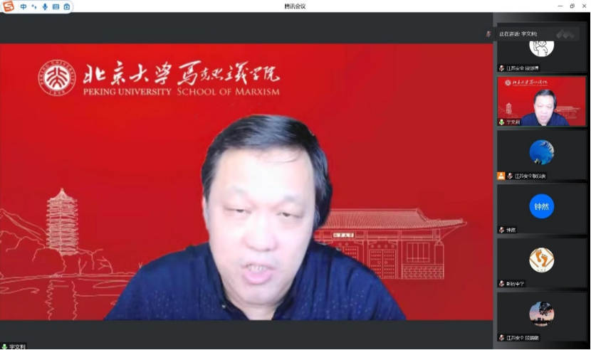 在主旨报告环节,北京大学K8副经理、教授宇文利作《深入把握党的二十大的历史意识》主旨发言。他通过党的二十大报告和党的十九届六中全会通过的历史决议进行比较,指出党的二十大报告中“历史”一词是高频热词,对过去成就和变革的总结展现了中国共产党强烈的历史意识。他讲到党的二十大的历史意识主要体现在三个方面:其一,大会主题本身就彰显了厚重的历史意识;其二,党的二十大是在历史视角上进行定位和布局;其三,党的二十大报告在具体的历史判断当中抒发了历史意识。