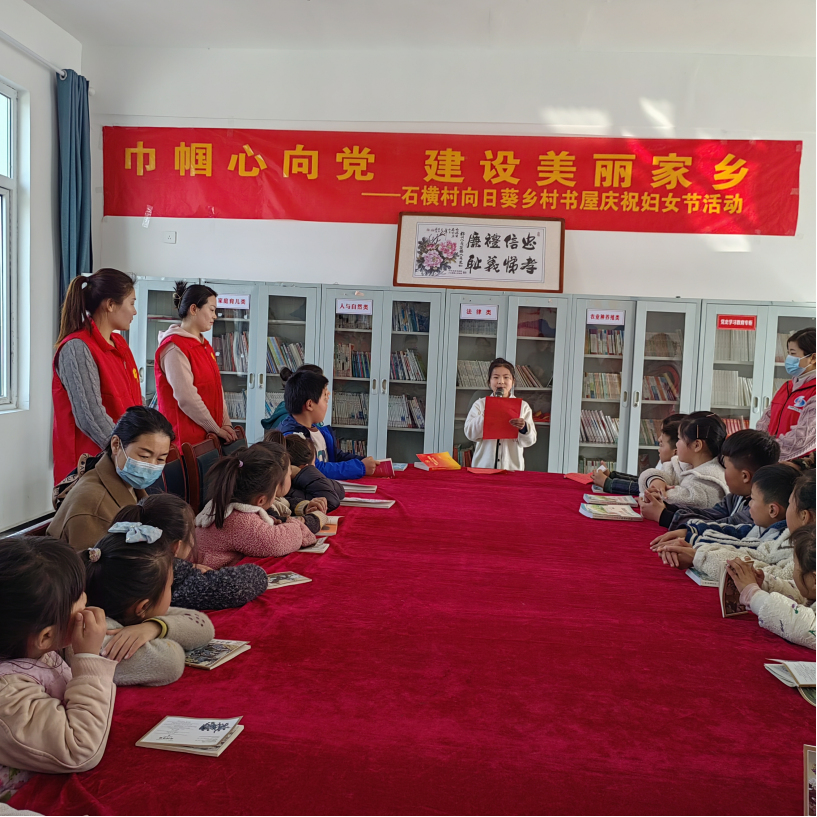 石横村的乡村书屋里孩子们给妈妈朗诵诗歌、讲雷锋故事、说家乡新变化,通过丰富多彩的形式向妈妈表达谢意,接着参加为孤寡老人打扫庭院的志愿者活动。才庄村老年服务站通过召开妇女代表座谈会和评选“好婆婆好儿媳”等活动,激励女同胞立足家乡建设,关爱老人、孝敬老人、弘扬优良传统,促进乡风文明建设。