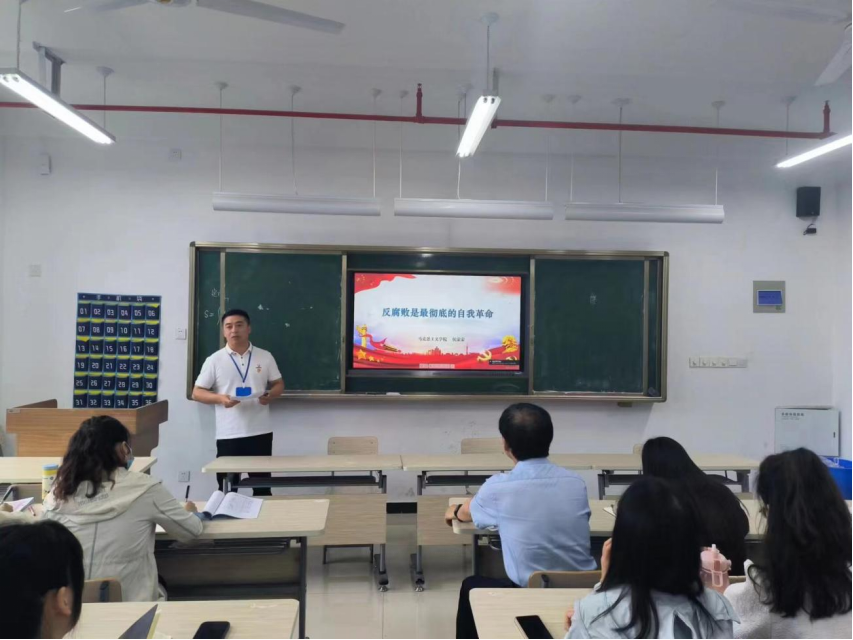 会上,第四党小组组长侯蒙蒙以“反腐败是最彻底的自我革命”为主题进行领学,侯蒙蒙从中国共产党没有任何自己特殊的利益、不能关起门来搞自我革命、党的自我革命永远在路上三个方面由点到面、由表及里,系统讲解了“反腐败为什么是最彻底的自我革命”这一主题。