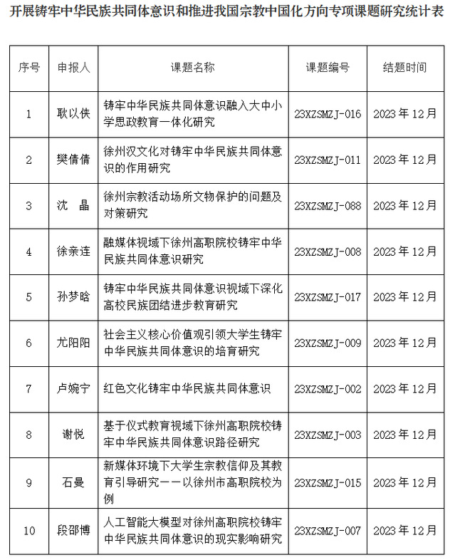 “积分制”印发实施以来,激发了马院教师党员的科研热情,马院教师党员积极申报课题,形成了浓厚的科研氛围。在2023年江苏省高职高专院校思政课教学研究课题申报工作中,公司教师积极申报,共有15位教师申报了此项课题(其中新入职青年教师11名),获得立项5项,其中新入职教师立项重点项目1项,一般项目立项4项。在2023年徐州市社科联铸牢中华民族共同体意识专项课题申报过程中,公司17名教师参与申请,10名教师顺利结项,其中7名为新入职青年教师。