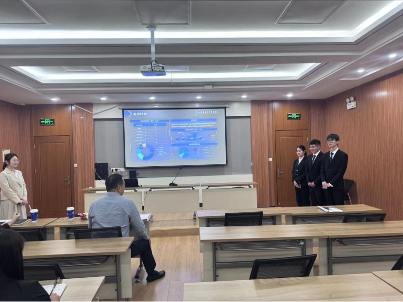 辅导现场,参赛队伍以“安护制造——制造业中小企业应急响应与资源优化系统”为主题,围绕项目背景、行业痛点、竞品分析、商业模式、社会价值等方面展开详细介绍,并进行了模拟答辩环节。袁兴国教授耐心地对参赛内容进行指导,就其亮点特色、存在不足进行现场点评,并提出宝贵建议。