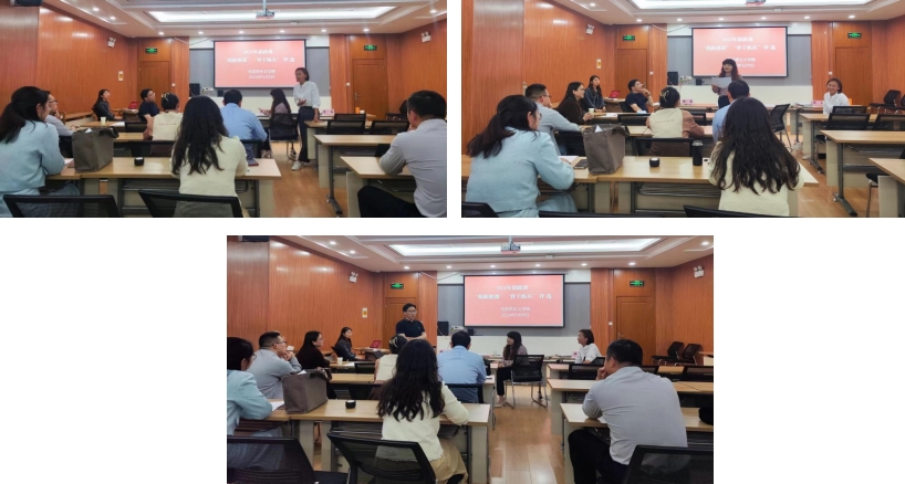 赛后,杨晓慧经理、赵炜教授、周军教授与参赛教师进行交流座谈,针对参赛教师存在的问题提出建议举措。杨晓慧经理用自身参赛经历与老师们交流参赛感受和参赛注意事项,建议从新颖且贴合课程内容的角度选取教学主题,以问题式、逻辑式的方法设计教学内容,以简洁美观的课件呈现授课思路,把思政课讲深、讲透、讲活。赵炜教授指出,教师的言谈举止本质上是一种育人方式,思政课教师要吃透教材,努力做到基于教材、超越教材,树立问题意识,开展问题链教学,把上好课当成最终目标。周军教授从思政课教师承担立德树人使命的角度勉励参赛教师必须不断夯实知识基础,提升教学能力,坚持为党育人、为国育才。