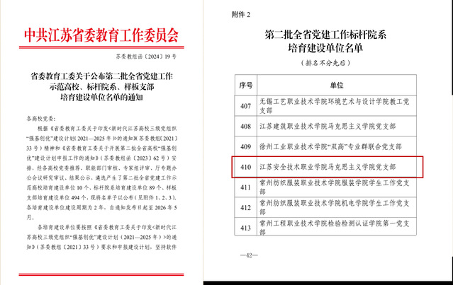近日,江苏省委教育工委公布了第二批全省高公司党建工作“标杆院系”“样板支部”培育创建单位名单,我支部获批“样板支部”培育创建单位。
