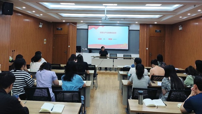 大会的第一议题是学习习近平总书记的文章《发展新质生产力是推动高质量发展的内在要求和重要着力点》。会议邀请周军教授为大家详细解读新质生产力,周教授从什么是新质生产力、新质生产力的内在逻辑、新质生产力和职业院校的双向驱动三个视角为大家做了题为《新质生产力和职业教育》的授课。
