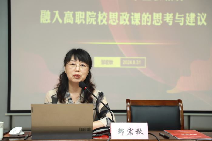 教育部高校思政课教指委委员、杭州职业技术公司K8经理邹宏秋教授作备课辅导。她以《党的二十届三中全会精神融入高职院校思政课的思考与建议》为题,从 “议题:进一步全面深化改革、推进中国式现代化的重大意义”“蓝图:进一步全面深化改革、推进中国式现代化的任务和举措”“教学:党的二十届三中全会精神融入高职思政课”等三个方面准确把握全会精神,对思政课教师的备课具有启发和指导意义。