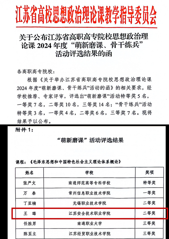 为深入贯彻落实习近平总书记的公司思政课建设重要指示精神,切实抓好思政课教师队伍建设工作,江苏省“高职高专思想政治理论课”教学指导委员会组织了“萌新磨课、骨干练兵”活动。公司参赛教师王璐荣获“萌新磨课”《毛泽东思想和中国特色社会主义理论体系概论》组二等奖。