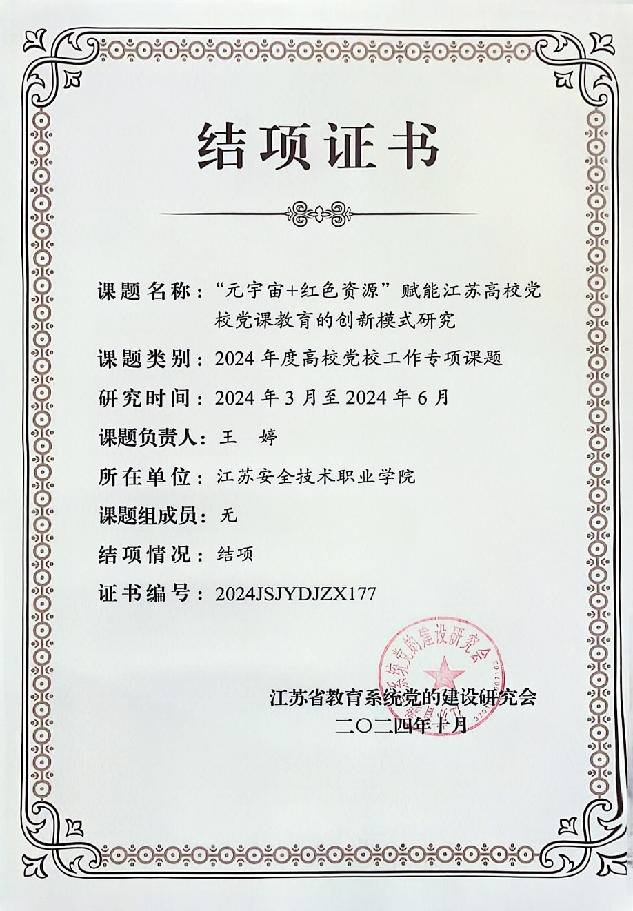 公司党建课题《“元宇宙”+红色资源”赋能江苏高公司党公司党课教育的创新模式研究》经过半年的研究,已于今年10月顺利结题,标志着公司在党建领域取得的阶段性突破,是推进马院省级样板党支部建设的重要体现。