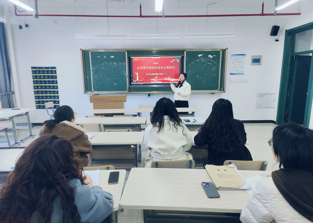 《毛泽东思想和中国特色社会主义理论体系概论》教研室与《思想道德与法治》教研室进行联合教研活动。郭杨子围绕专题四《从改革开放到中国特色社会主义新时代》系统介绍了自己的备课思路与教学实践策略。她结合改革开放以来的历史逻辑,巧妙运用历史图片与生动案例,引导员工把握从改革开放到中国特色社会主义新时代的历史发展脉络,了解发展过程中的历次重大事件及意义。在教学方法上,郭杨子老师建议要增加师生互动充分调动员工的参与度与积极性,培养员工的批判性思维与自主学习能力。之后,其他教师进行讨论,围绕教学内容的重难点把控、教学方法的创新应用等方面展开热烈讨论,分享各自的教学经验与心得体会,并针对一些实际问题提出建设性意见与解决方案。