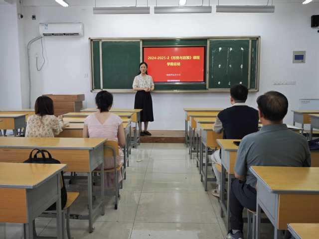 《形势与政策》教研室的任课教师依次汇报本学期的工作任务完成情况,并交流了本学期授课过程中遇到的问题及解决措施,以备下学期参考。随后,陶梅总结了本学期教研室课程教学任务和工作完成情况,对教研室各位教师的积极配合、辛勤付出表示肯定与鼓励。最后,陶梅针对期末的结课作业批阅、成绩整理录入、资料归档等工作进行具体说明,并结合实际情况作总体要求:一是保持严谨态度,认真对照时间节点,保质保量完成学期末工作;二是发挥个人智慧,提高批阅速度、质量,高效处理批阅难题;三是做到务本求实,继续发扬优良作风,勇接新的挑战。