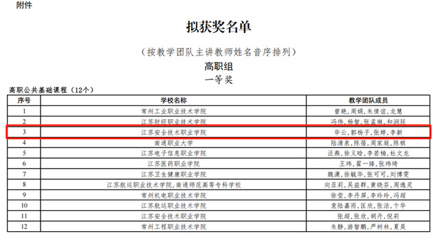 近日,2025年江苏省职业院校教学能力比赛决赛圆满落幕。经过网络初评、现场决赛,公司教师华云、郭杨子、张婷、李新团队荣获高职公共基础课程组一等奖。