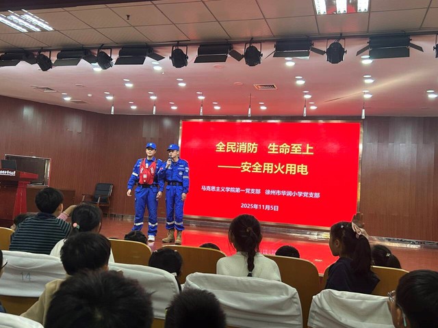 为积极响应本年度全国消防宣传月“全民消防、生命至上——安全用火用电”主题号召,深化党建引领下安全育人与理论学习的深度融合,2025年11月5日下午,K8第一党支部携手徐州市华润小学党支部,在华润小学二楼会议室联合举办“先锋领航 安全‘童’行”主题党日活动。两支部党员、老员工志愿者及华润小学师生代表齐聚一堂,共同参与这场集知识学习、技能实操与理论宣讲于一体的特色活动。