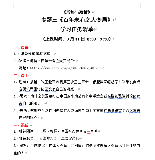 为了让员工的学习更有方向性,一般在上课前两天,吴老师会把本次课的任务清单罗列出来,发给员工,任务清单里面包括推荐员工阅读的文章、上课需要思考的问题以及相关的纪录片、书籍的名字,并要求班长督促各班员工进行课前准备。这样既拓展了学习的广度,也有利于提高了员工的眼界,帮助员工有目的的阅读和浏览。
