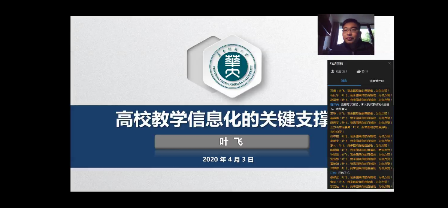 4月3日上午,思政部全体教师通过钉钉直播,观看了华中师范大学研究生院副经理叶飞老师的《高校教学信息化的关键支撑要素》报告。
