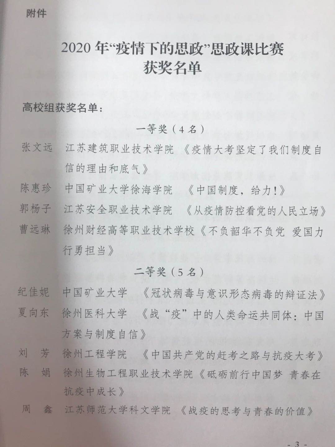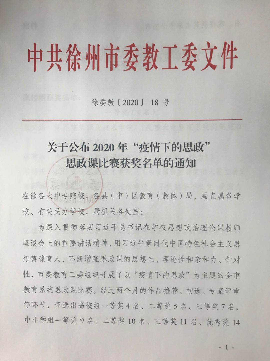 为贯彻落实徐州市教工委“疫情下的思政”教学比赛通知要求,公司积极参与比赛,喜获徐州市“疫情下的思政课”一等奖。