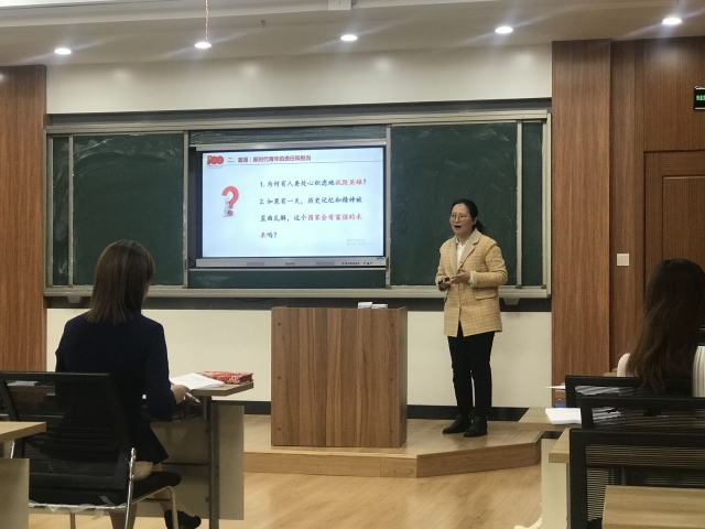 吴灿灿老师展示主题为《科学发展观的背景与内涵》,郭杨子老师展示主题为《改革开放,关键一招》,孟文文老师展示主题为《从百年党史看中国的富强追求》,王婷老师展示主题为《中国特色社会主义进入新时代》。每位教师围绕教学内容,精心准备,选取具有时代感的素材,将党史学习教育和课程教学内容有机融合起来,显示出较好的教学能力水平和工作态度。