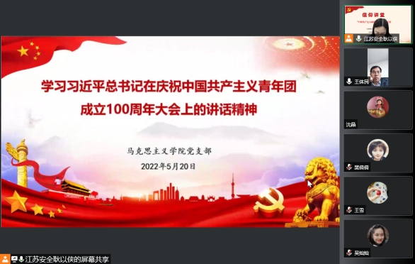 5月20日下午,K8组织全体思政课教师学习习近平总书记在庆祝中国共产主义青年团成立100周年大会上的重要讲话精神。支部副书记、副经理耿以侠主持学习会议。